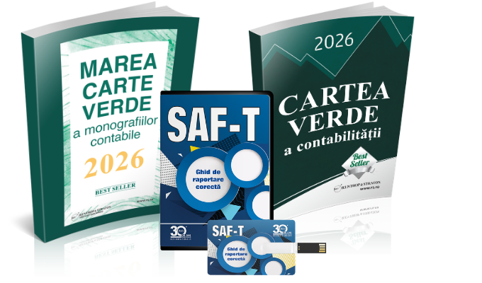 Achizitionati Pachetul format din SAF-T. Ghid de raportare corecta, Cartea Verde a Contabilitatii si Marea Cartea a Monografiilor Contabile la pretul total de 408 lei + TVA, redus cu 35% fata de pretul cumulat al celor doua lucrari de 627 lei + TVA!